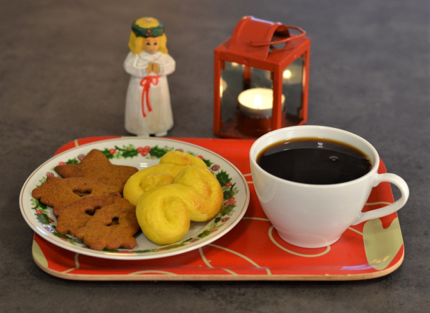 1st kaffe/te med 1 lussebulle och 2 pepparkakor